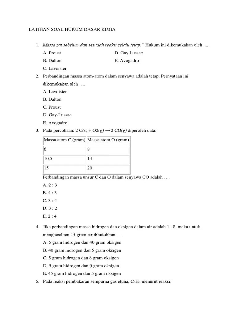 Soal ini termasuk soal hots karena. Jadi, perbandingan massa oksigen pada senyawa i dan ii adalah 1 : Enggak cuma korupsi doang yang punya landasan hukum , kimia juga . Sesuai judul , kali ini saya mau share tentang hukum dasar kimia. Contoh soal hukum dasar kimia dan jawabannya no.